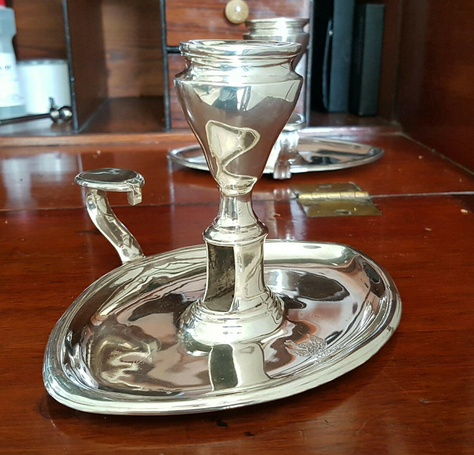 18th Century Luke Proctor Solid Silver Eagle Crested Oval Chamberstick