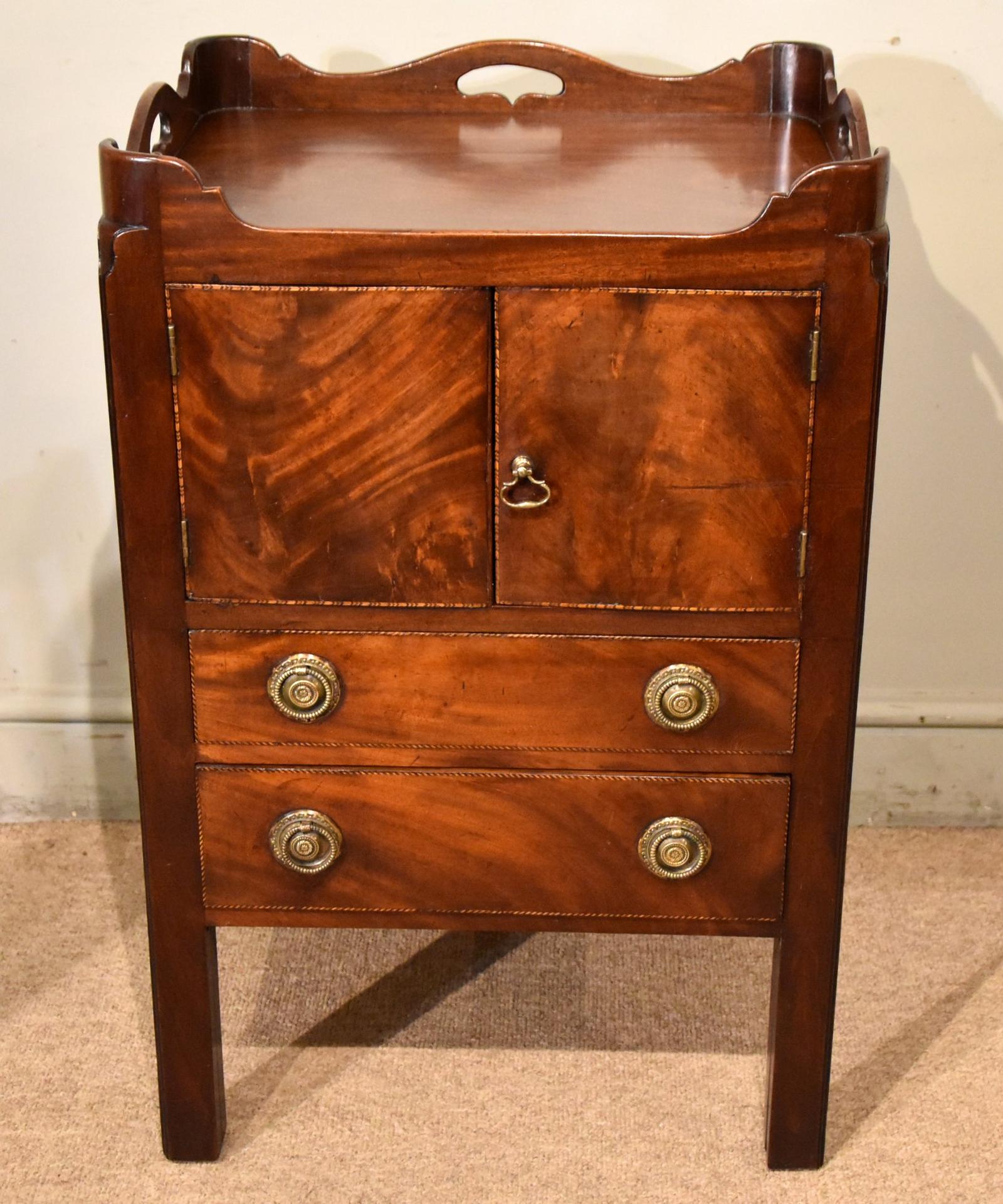 18th Century Mahogany Boxwood Ebony Bedside Cupboard