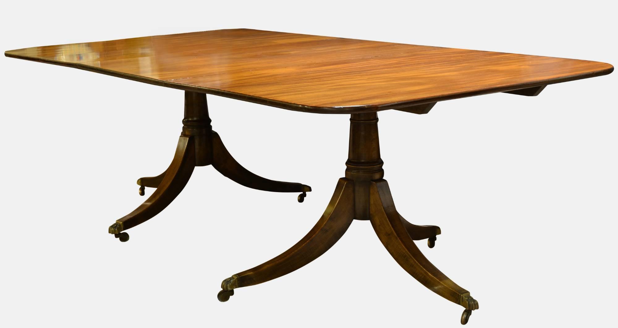 18th Century Mahogany Twin Pillar Dining Table