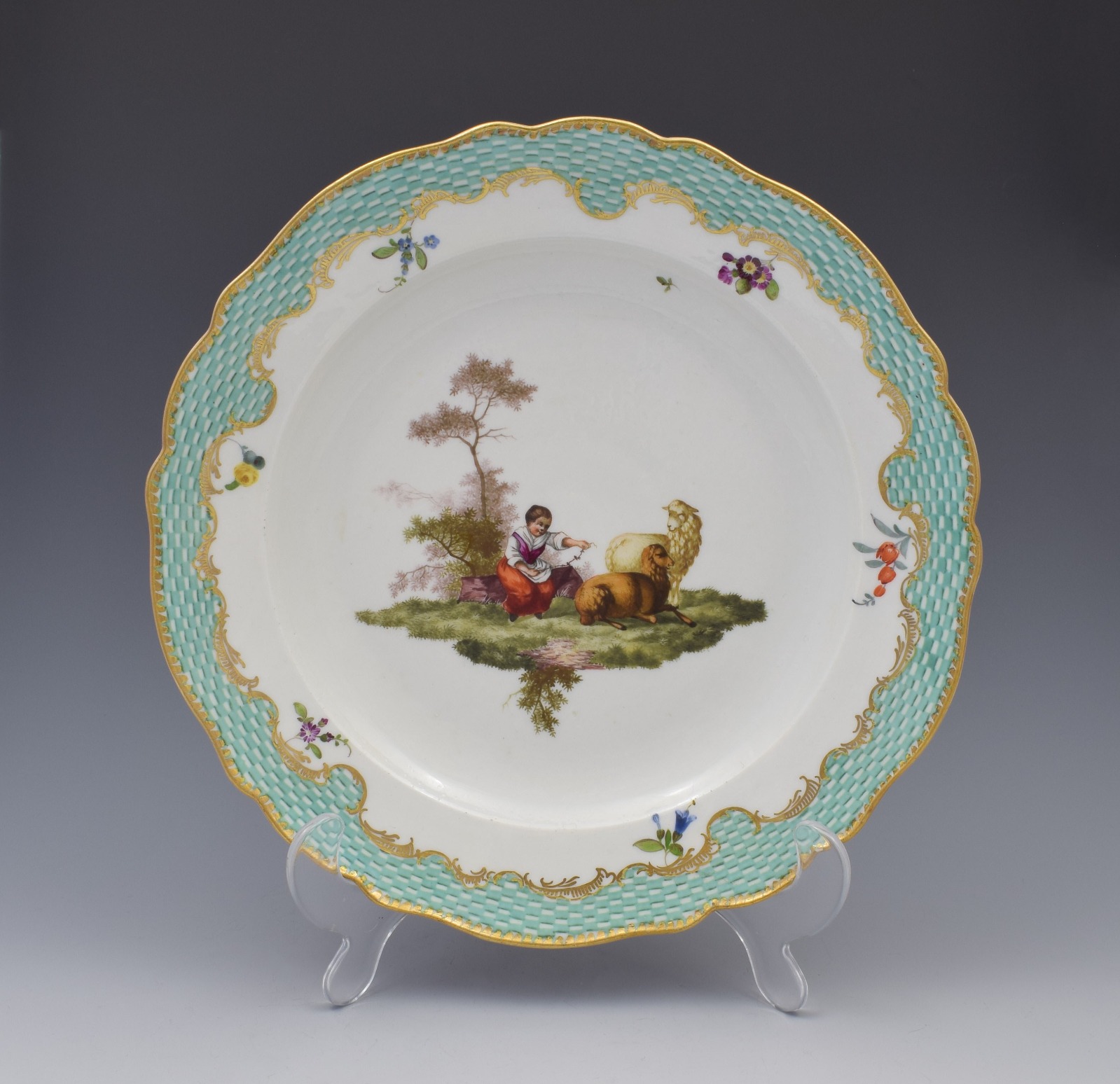 18th Century Meissen Dot Period Turquoise Scale Porcelain Plate