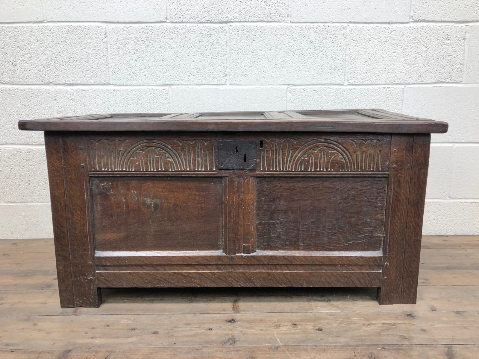 18th Century Oak Coffer Chest with Decorative Carved Front (1 of 1)