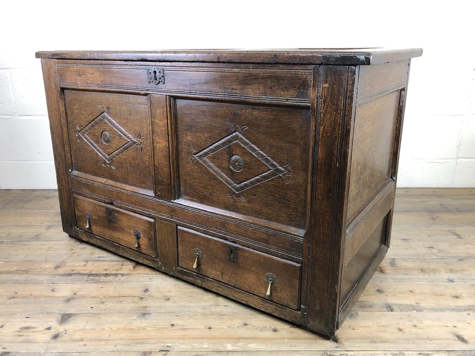 18th Century Oak Coffer or Mule Chest with Carved Panels (1 of 16)