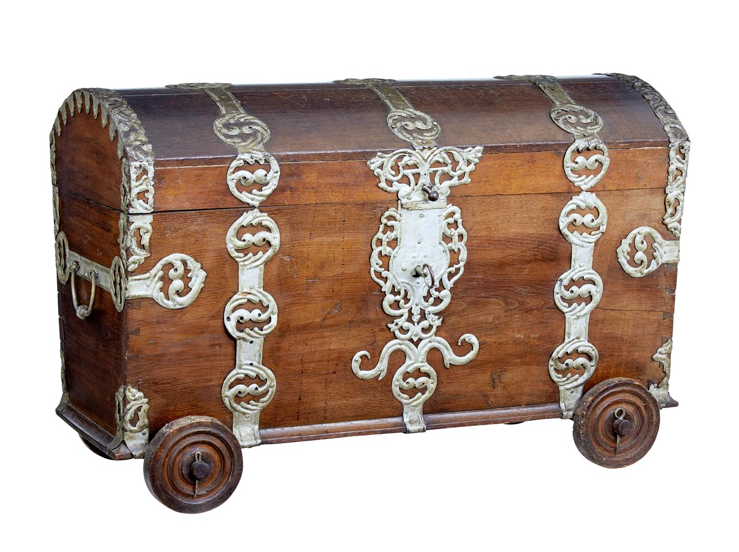 18th Century Oak & Metal Bound Trunk on Wheels (1 of 8)