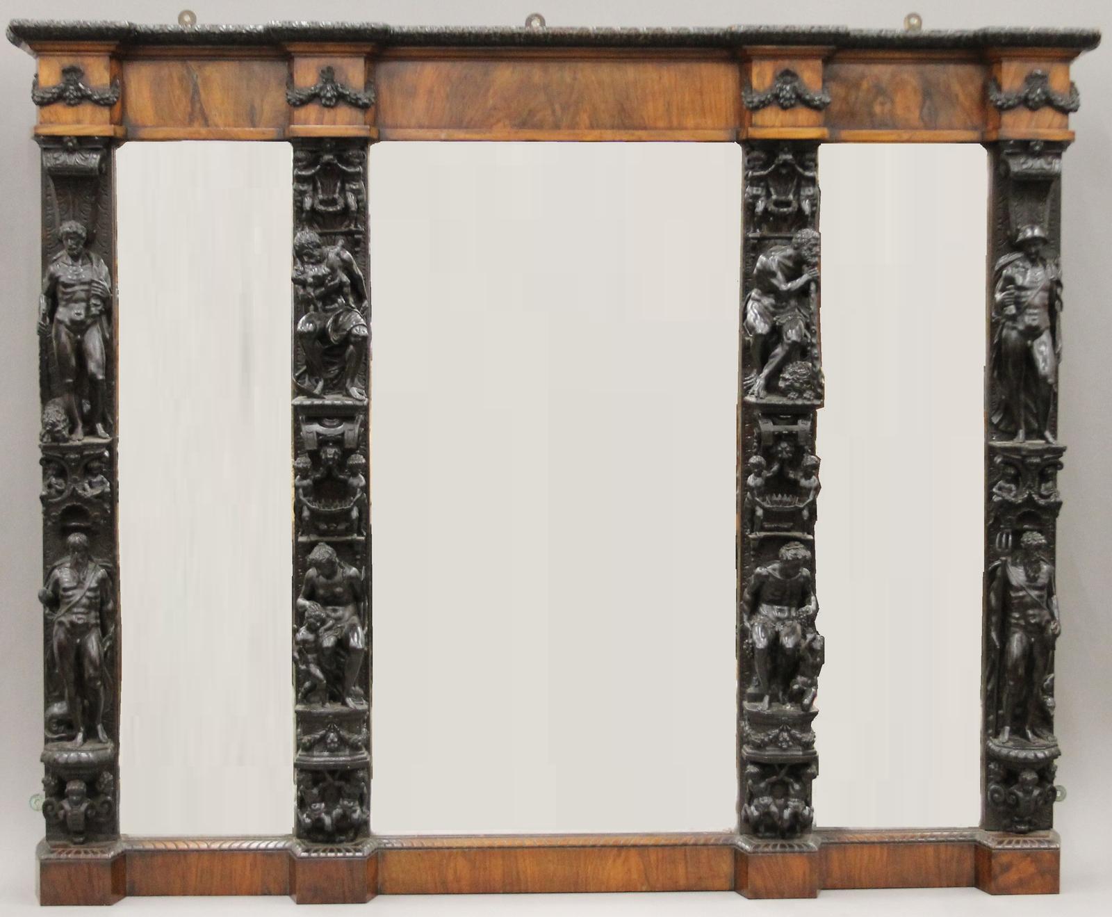 18th Century Ornately Carved Italian Walnut Overmantle Mirror
