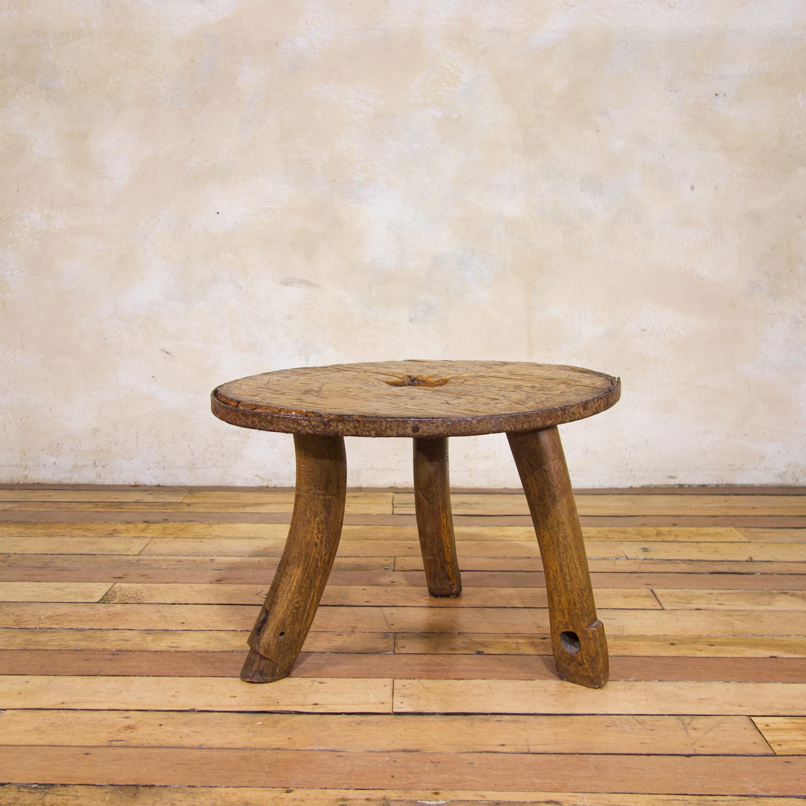 18th Century Ox Cart Wheel Top Low Side Table Stool