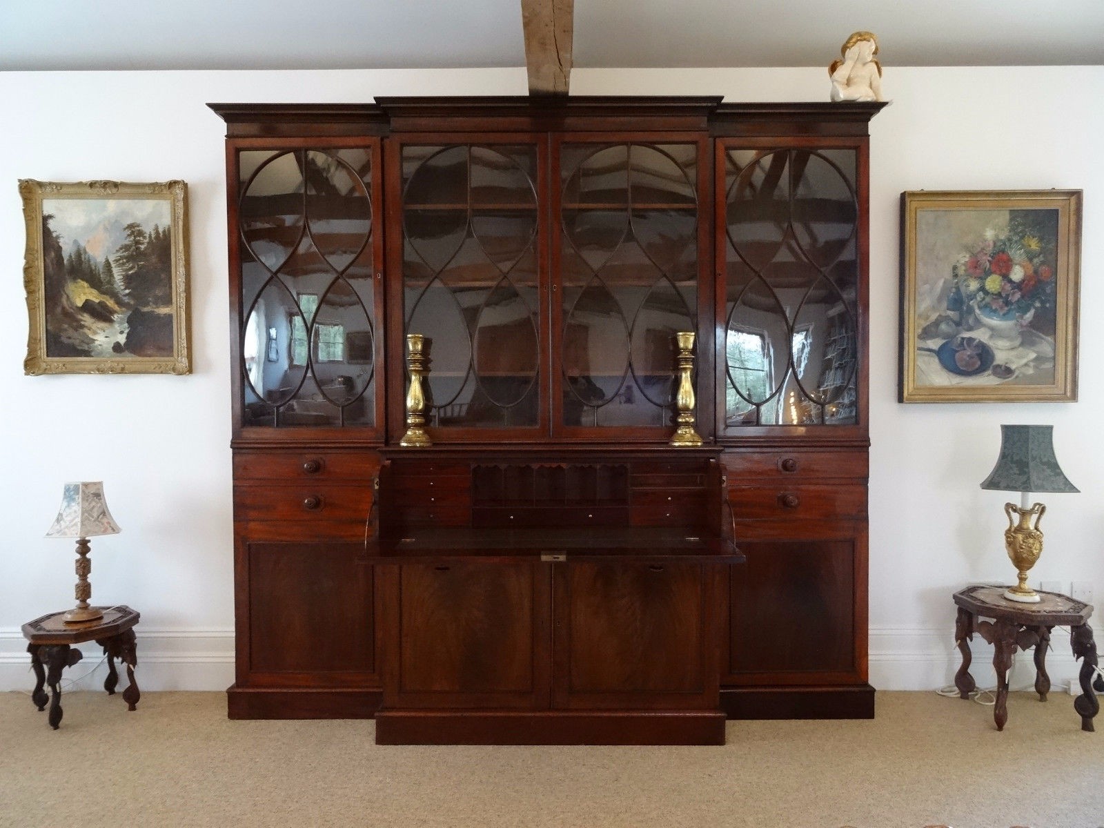 18th Century Period George III Figured Mahogany Breakfront Secretaire Bookcase c.1790