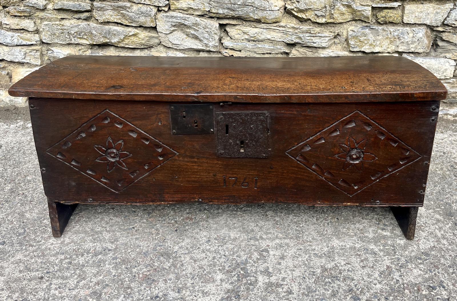 18th Century Planked Oak Coffer Dated 1761 (1 of 23)