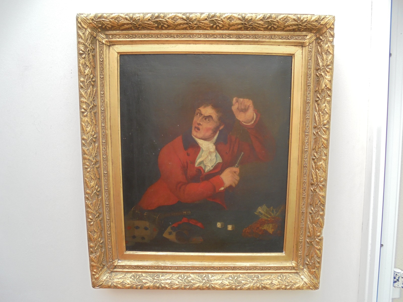 18th Century Portrait Oil Painting the Gambler
