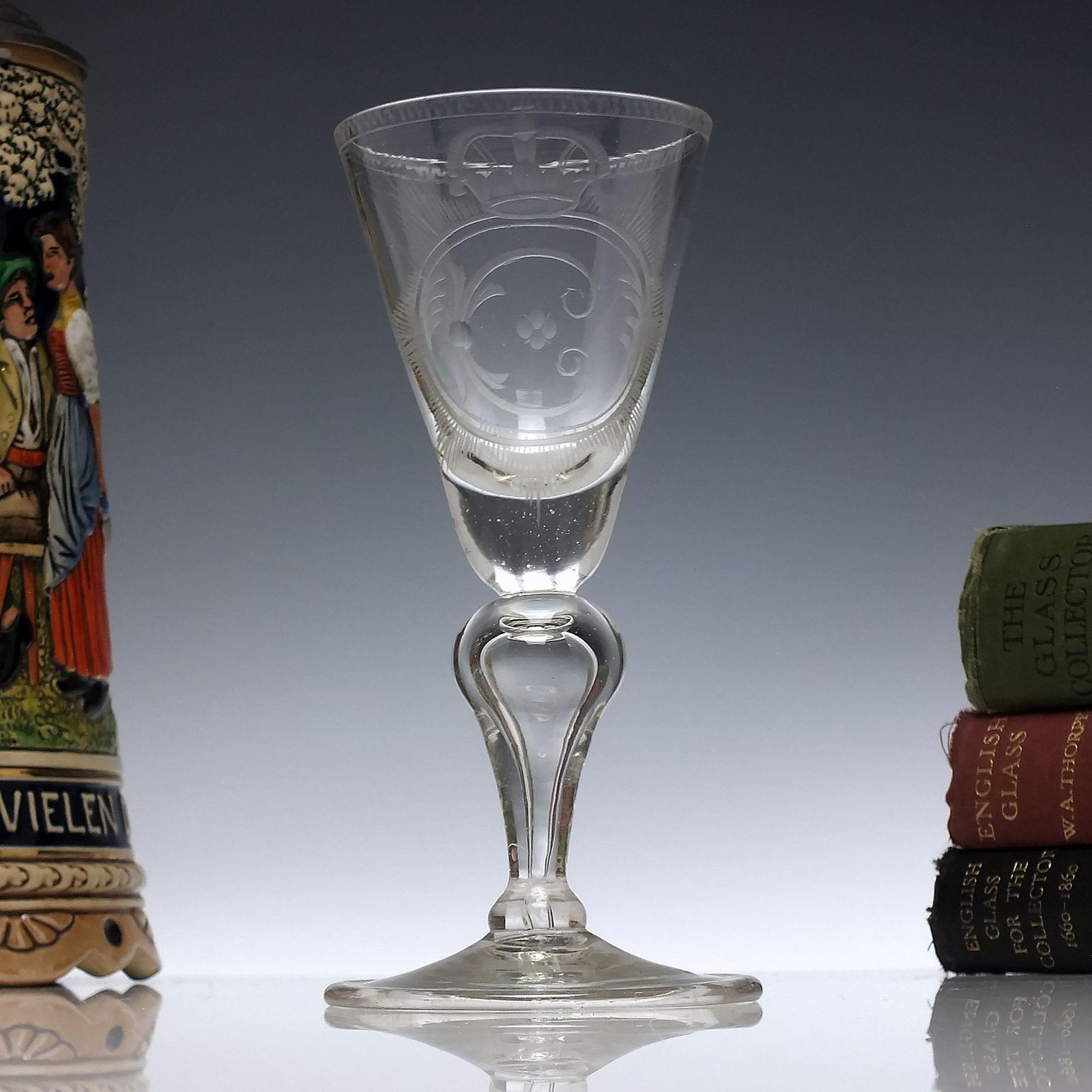 18th Century Saxon Engraved Wine Glass c.1750
