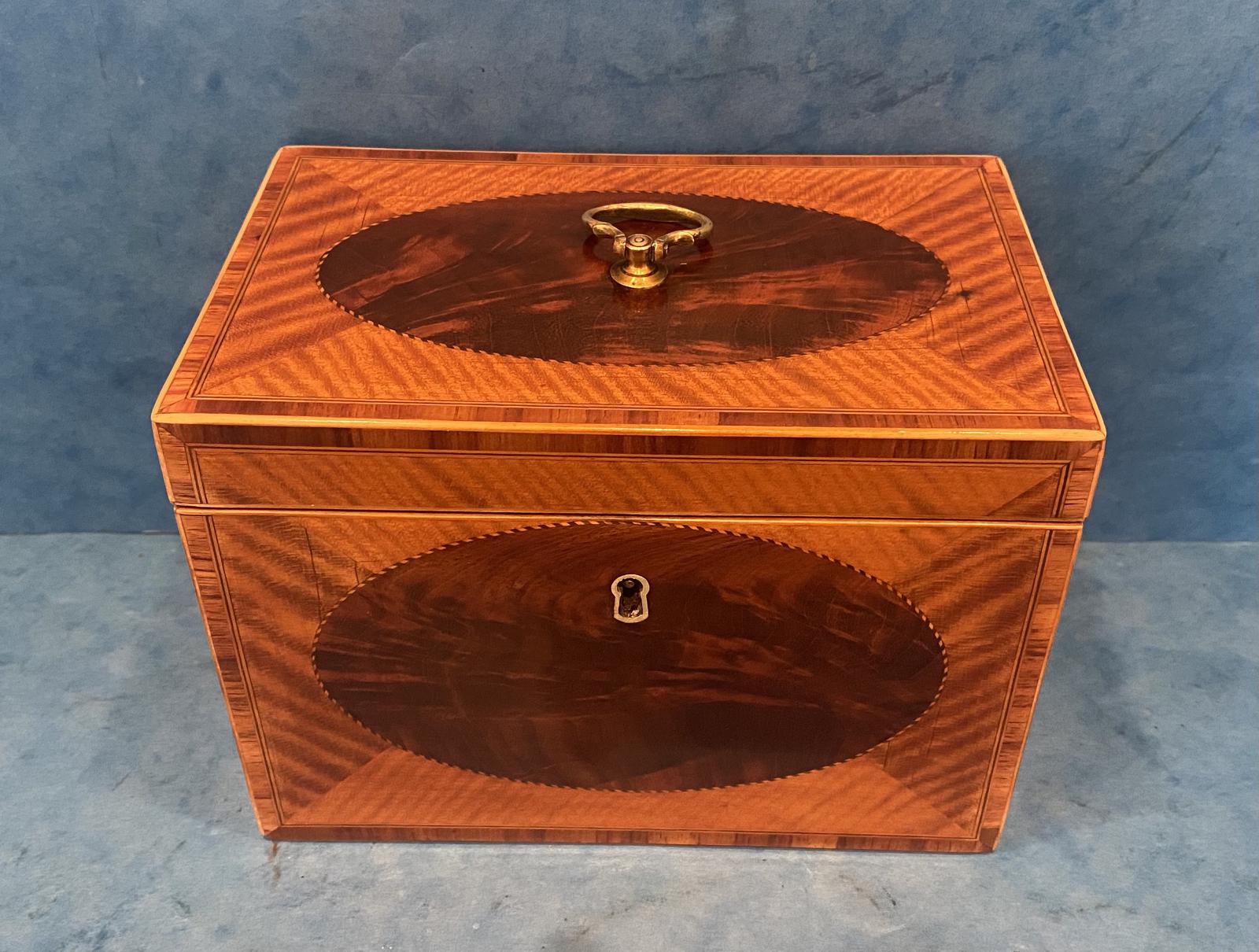 18th Century Sheraton Single Satinwood Tea Caddy with Mahogany Panels