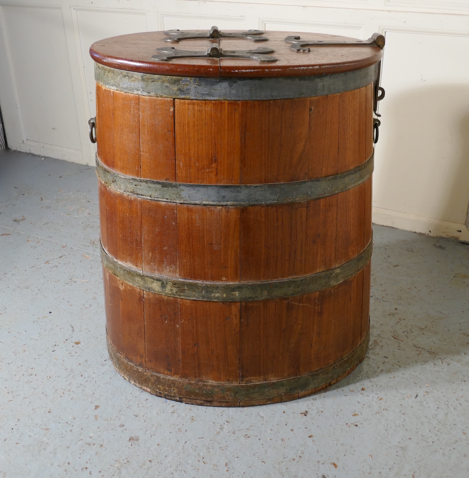 18th Century Ships Salt Beef Barrel, Oak & Brass Ships Storage Tub