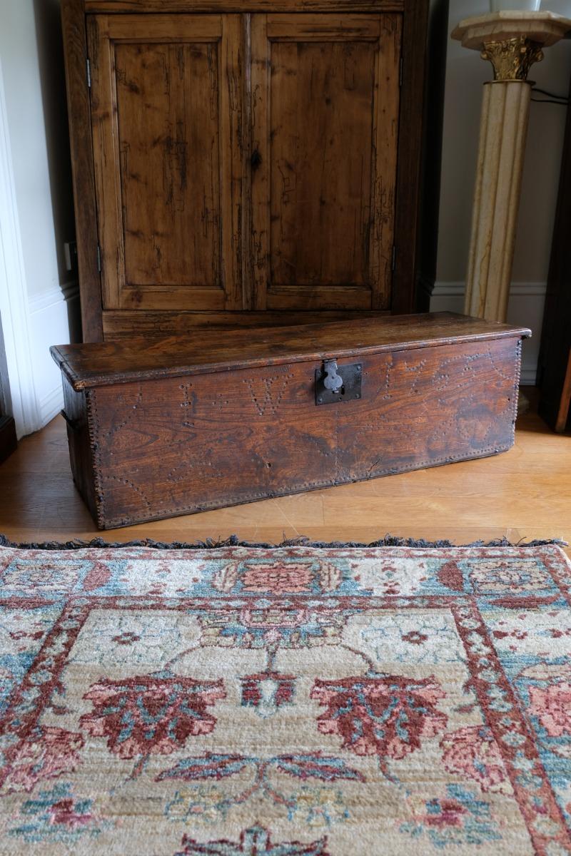 18th Century Six Board Elm Chipped Carved Coffer Dated 1765