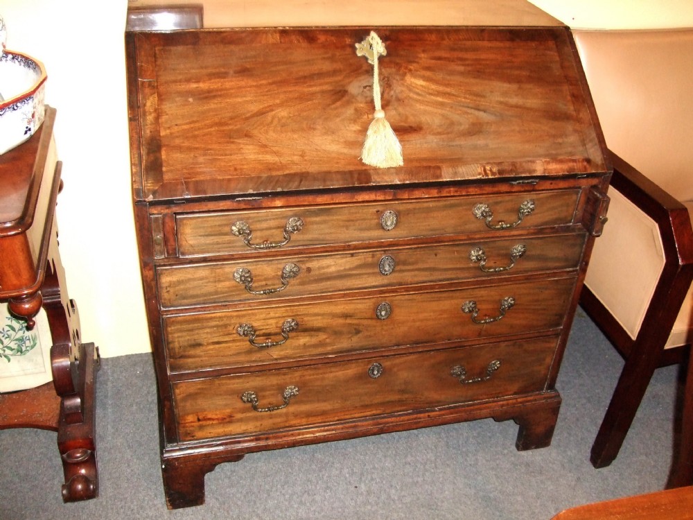 18th Century Small Mahogany Bureau with Fitted Interior & Well