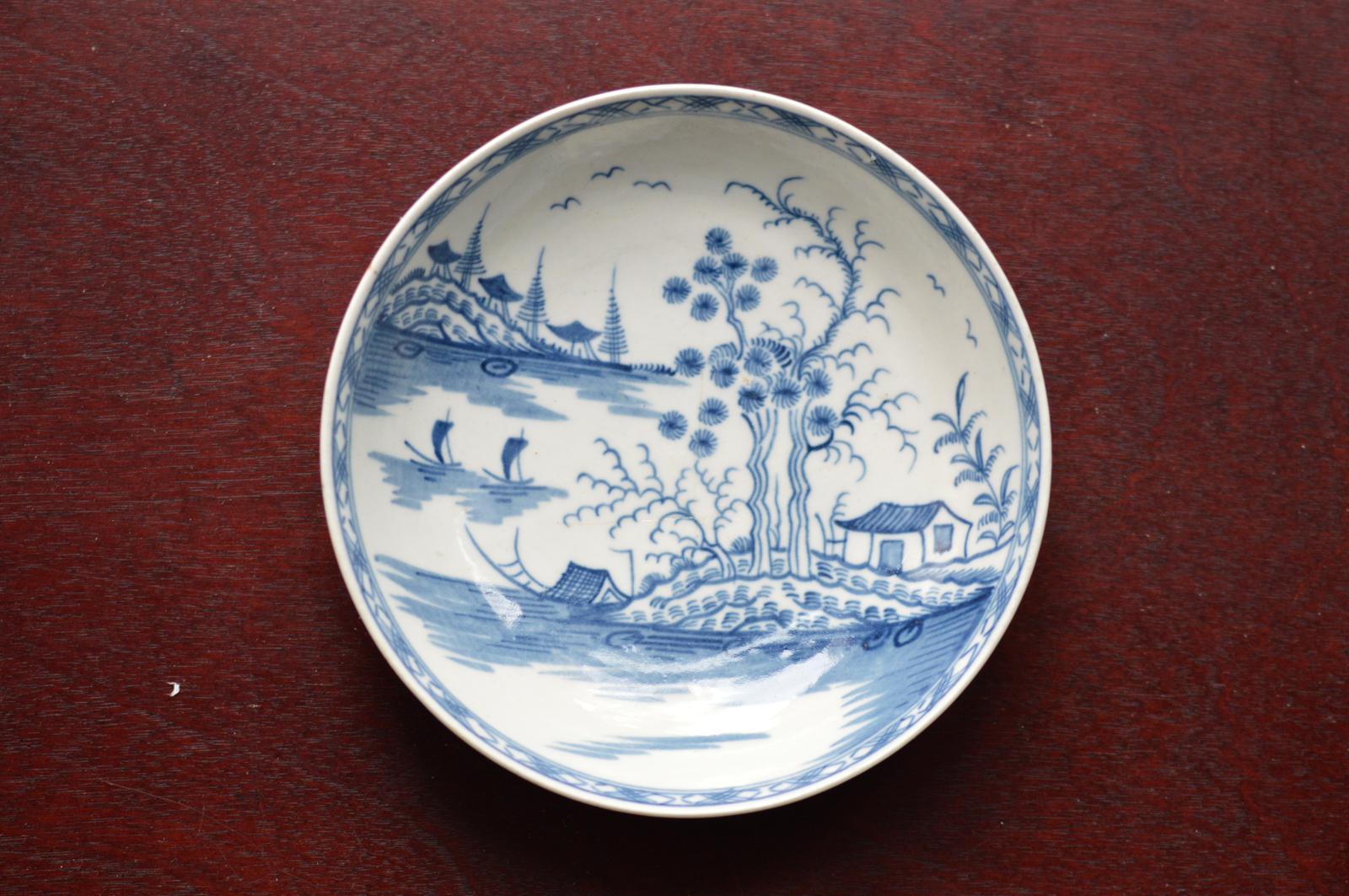 18th Century Worcester Porcelain Blue & White 'Rock Strata' Pattern Saucer (1 of 5)