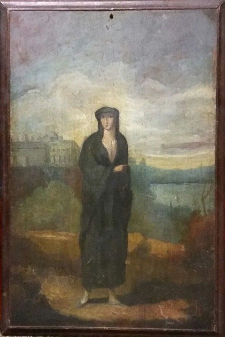 18thc Oil on Oak Panel Portrait Painting of a Young Lady