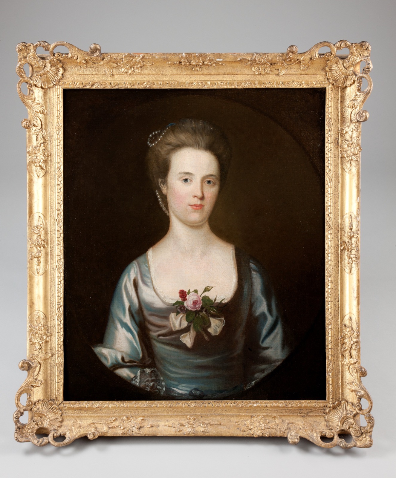 18thc Oil Portrait Painting of a Lady in Satin Blue Dress (1 of 1)