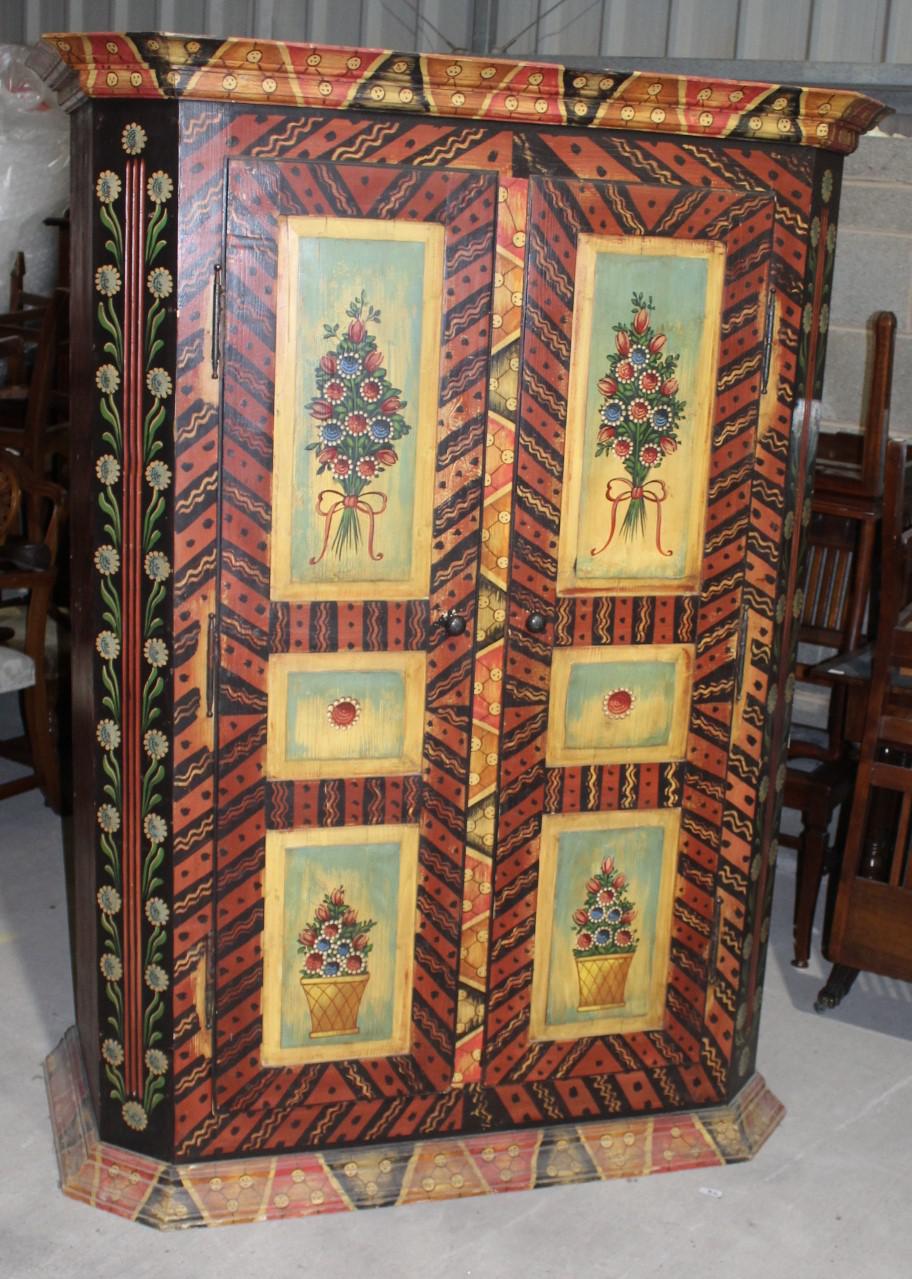 1900s 2 Door Decorative Painted Wardrobe from Slovenia