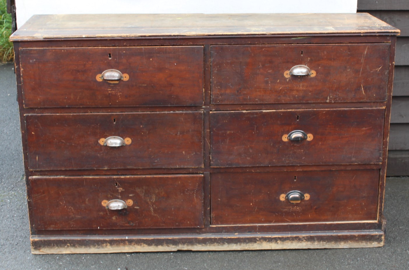 1900s Antique Pine Haberdashery Cabinet with 6 Large Drawers