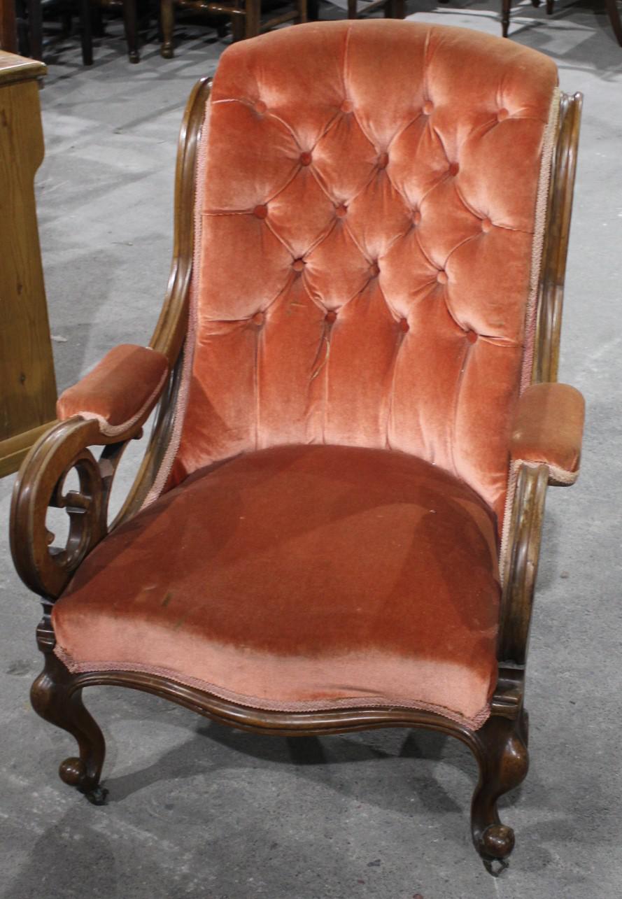 1900's Buttoned Back Occasional Chair in Pink upholstery