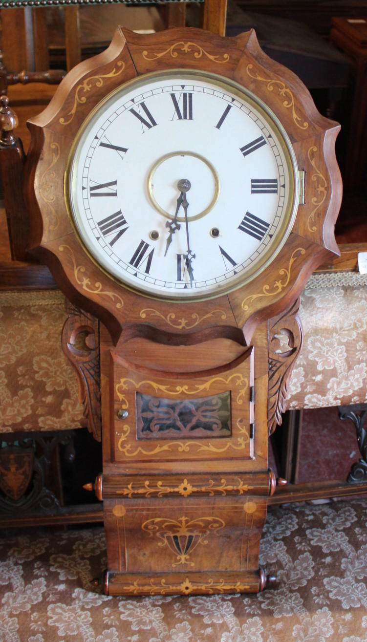 1900's Carved Mahogany 8 Day Wall Clock with Inlay