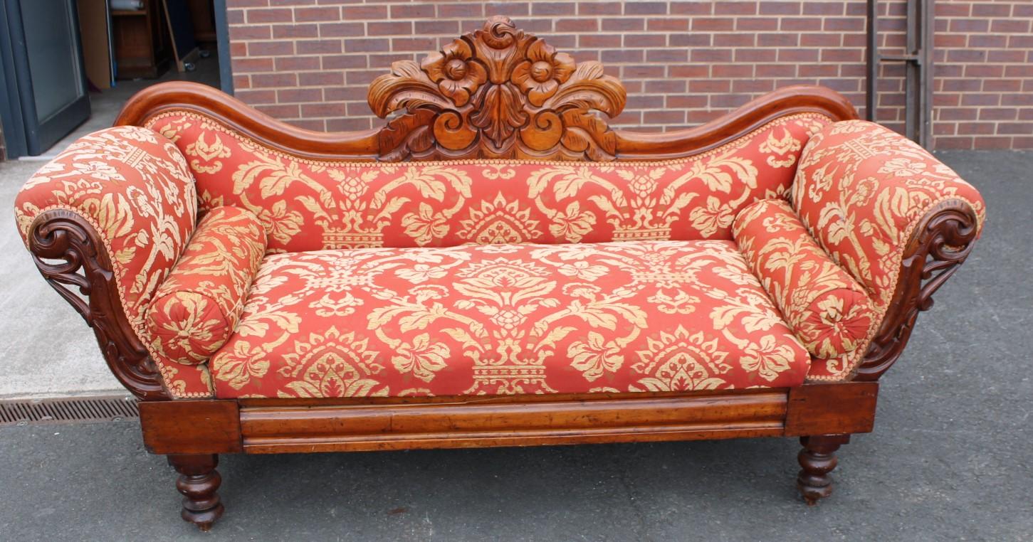 1900's Carved Mahogany Framed Sofa in Red Floral