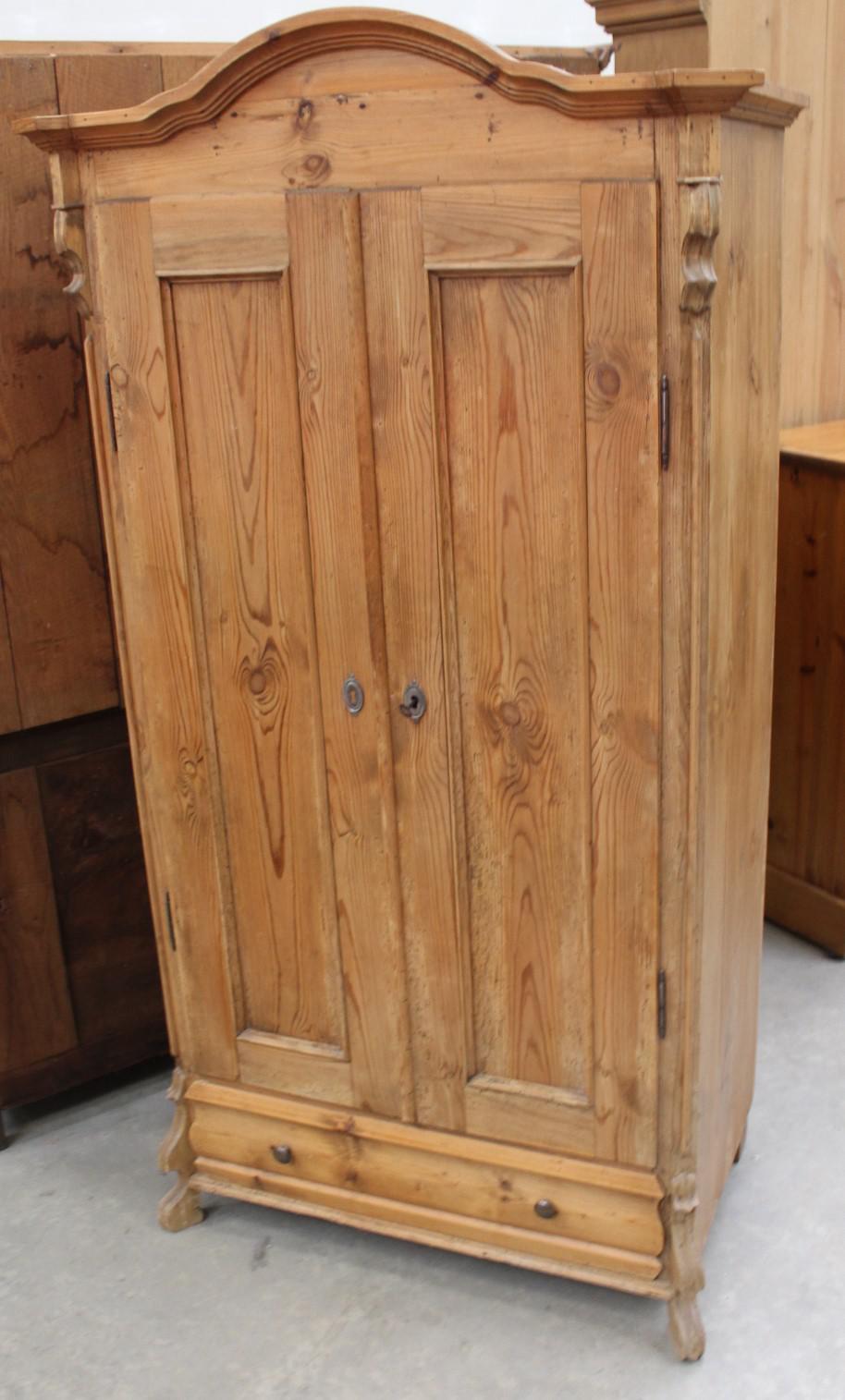 1900s Country Pine 2 Door Dome Top Wardrobe with Base Drawer