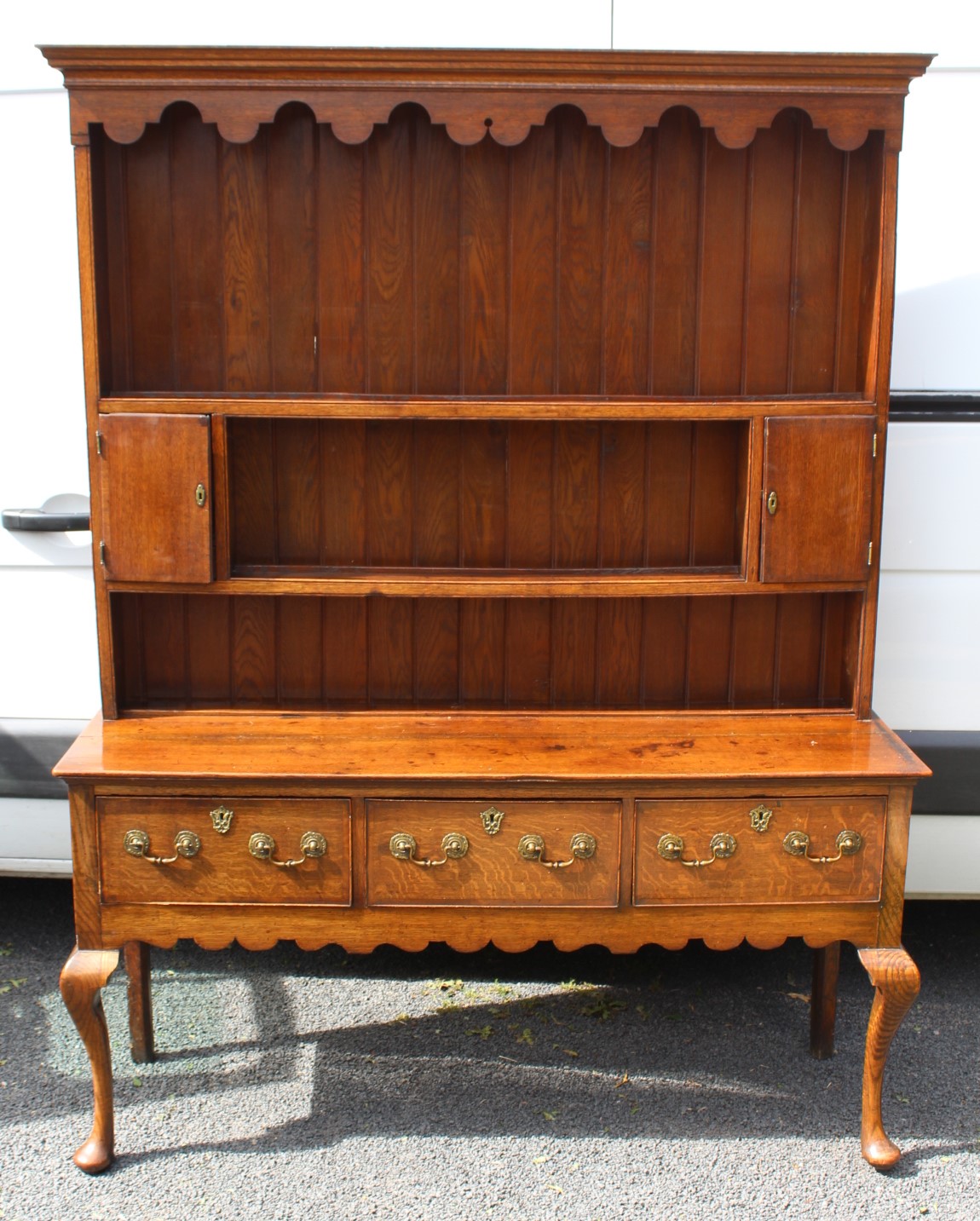 1900s Elegant Quality Oak Cab Leg Dresser with Display Rack