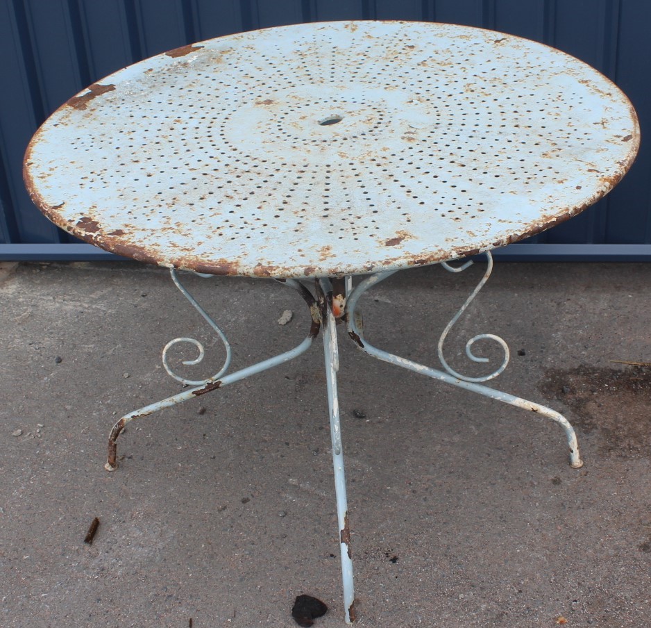 1900s French Metal Garden Table in Grey Green Finish