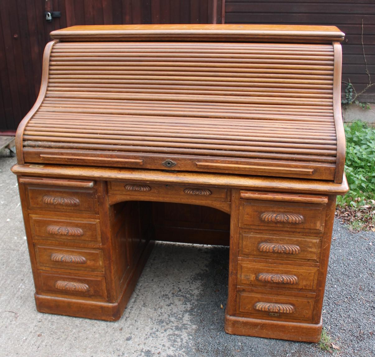 1900's Golden Oak Stype Rolltop Desk Good Interior