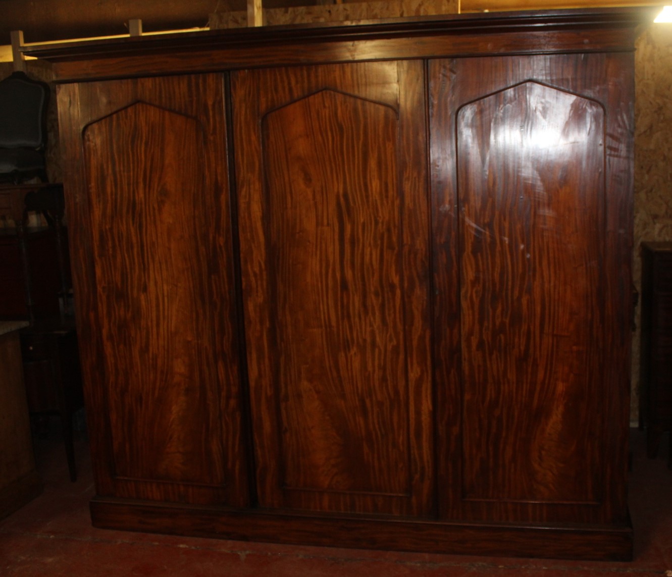 1900s Large 3 Door Mahogany Compactum Wardrobe with Good Interior