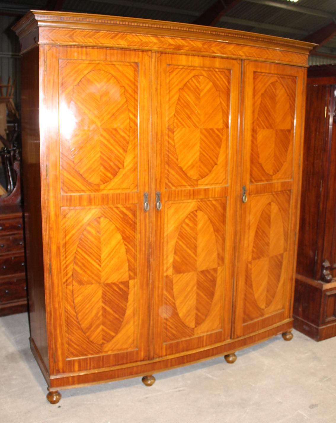 1900s Large 3 Door Satin Walnut Combination Wardrobe