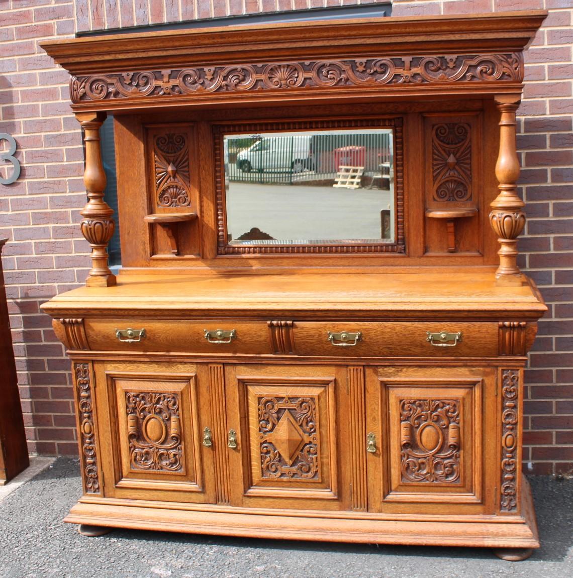1900s Large Carved Golden Oak Dresser with Mirror Back
