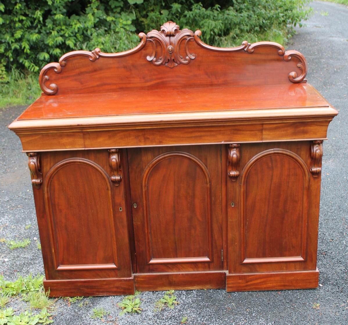 1900's Large Carved Mahogany 3 Door Sideboard with Back