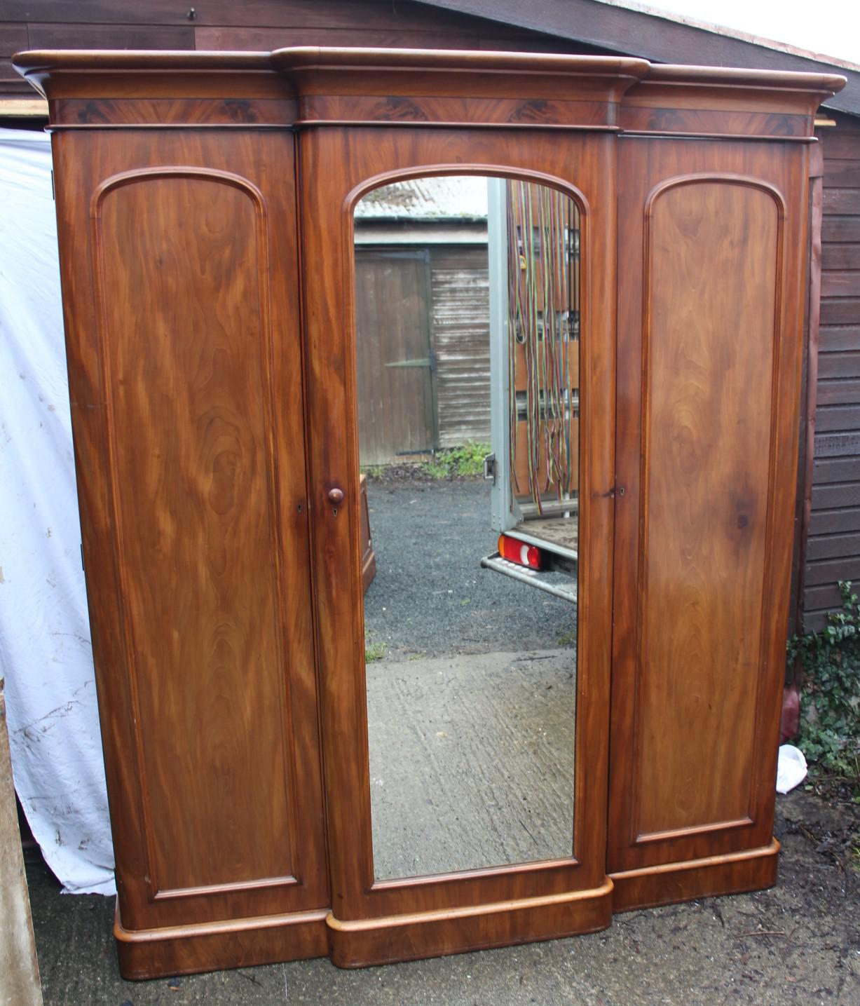 1900's Large Mahogany Mirrored 3 Door Wardrobe with Slides.