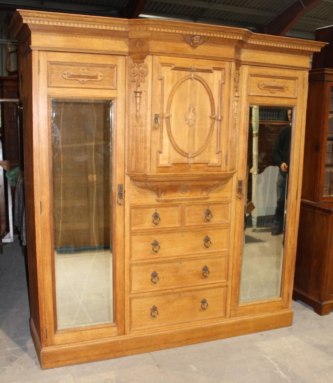 1900's Large Quality Oak Mirrored Compactum Wardrobe