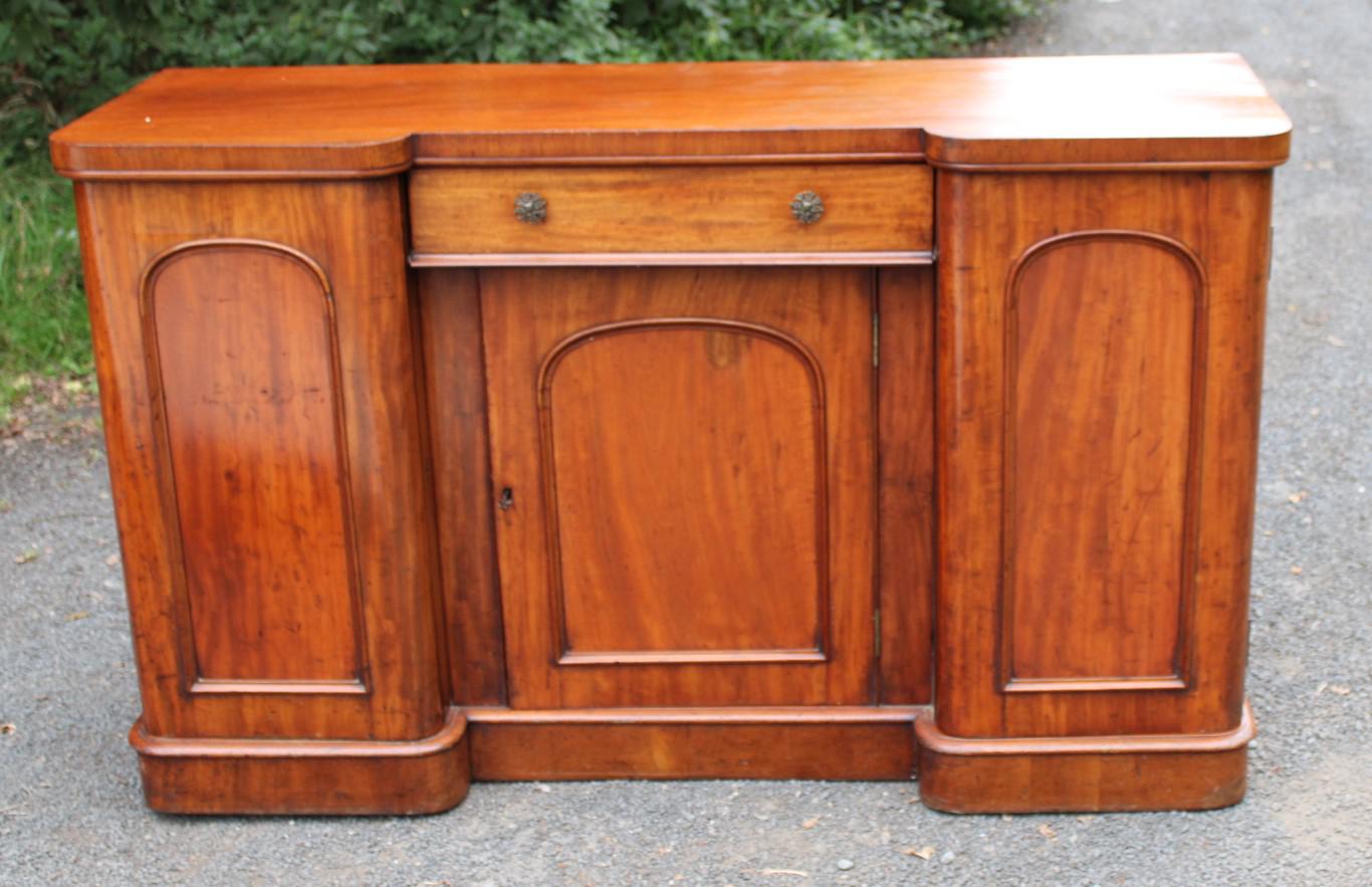 1900's Large Well Fitted Breakfront Mahogany 3 Door Sideboard + Key