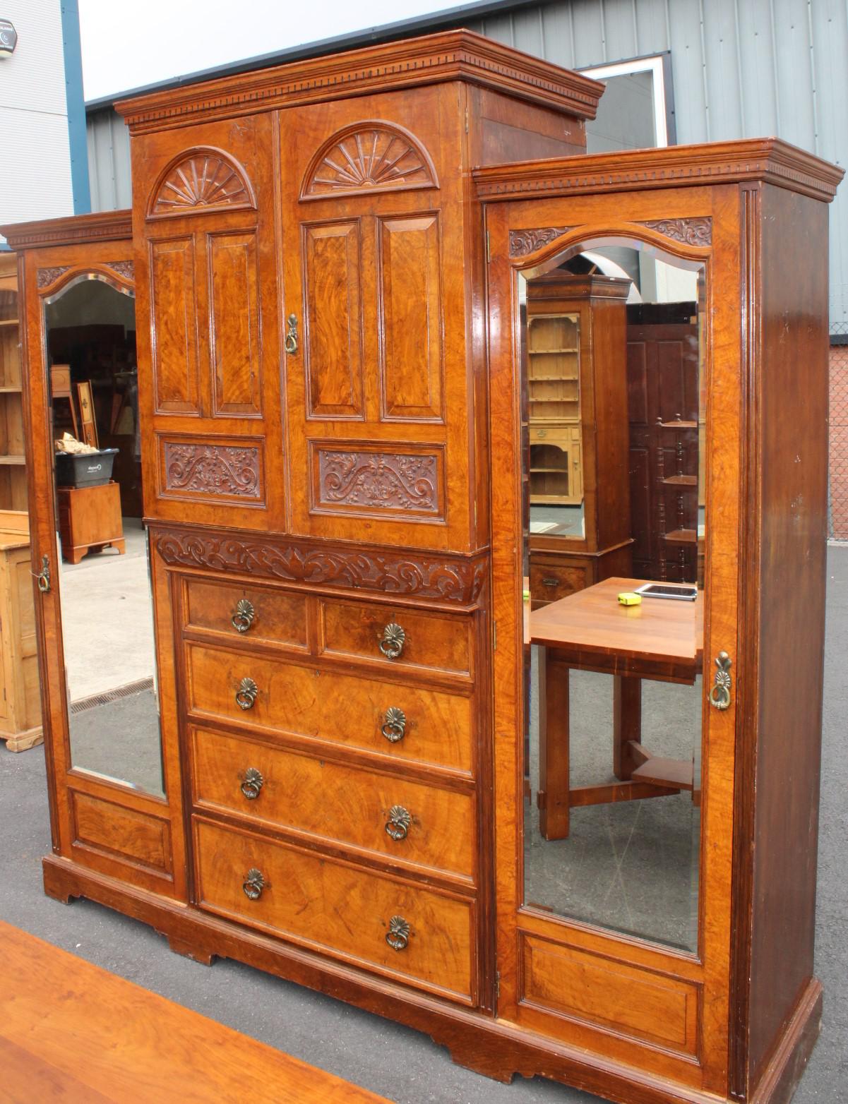 1900's Large Well Fitted Burr Walnut Compactum Wardrobe