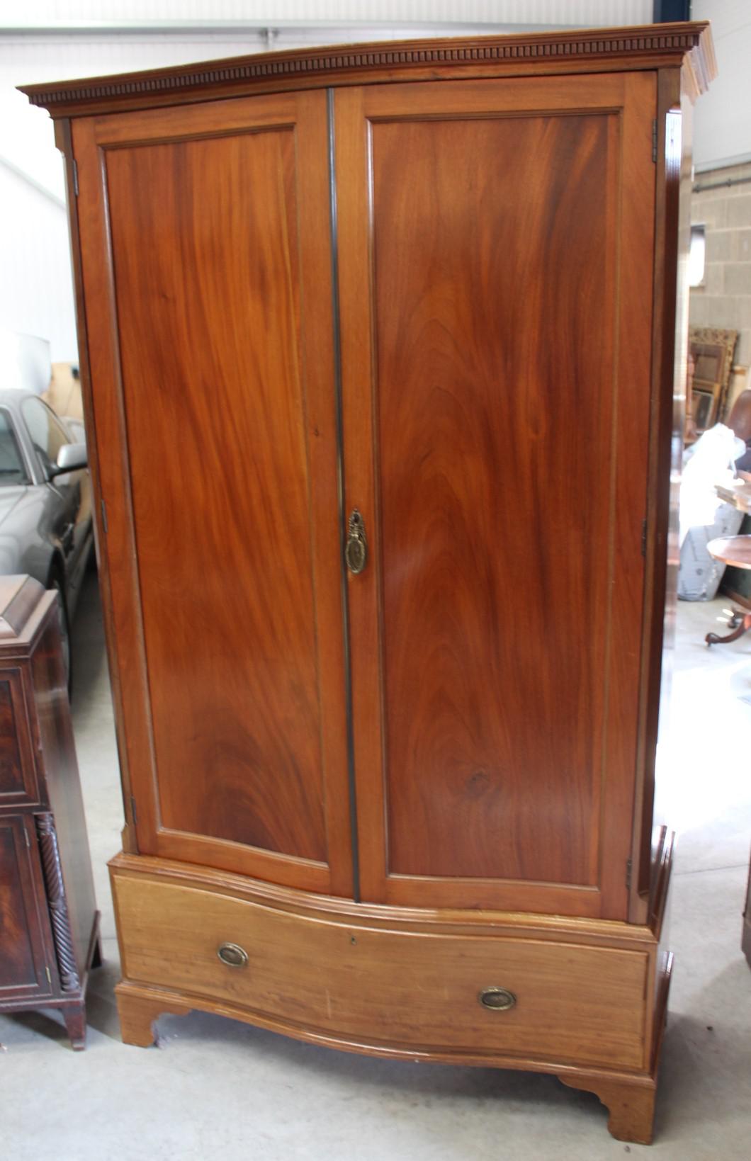 1900s Mahogany 2 Door Serpentine Wardrobe with Base Drawer