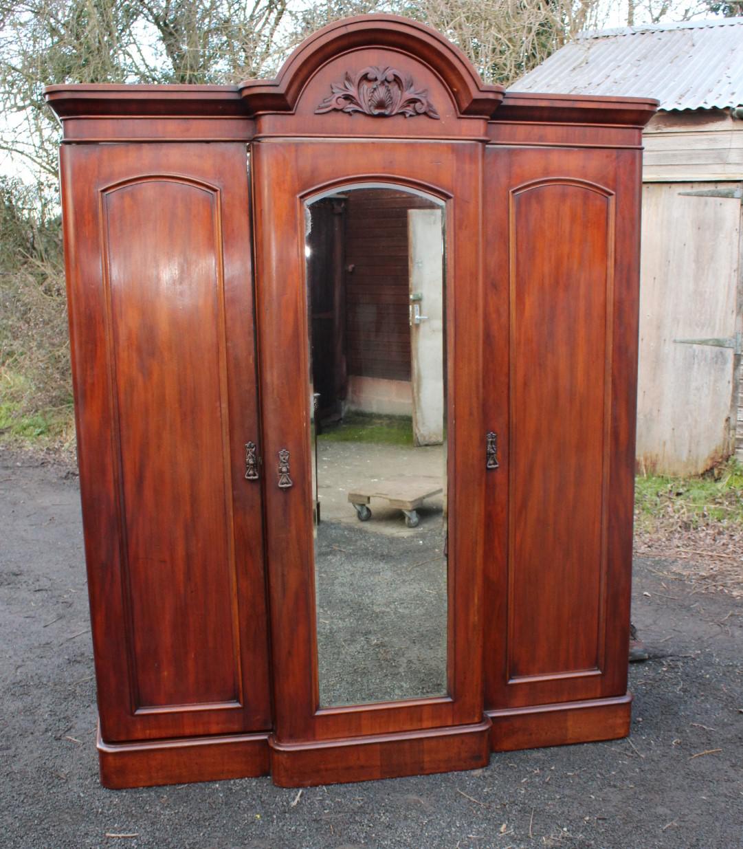 1900's Mahogany 3 Door Mirrored Dome Top Wardrobe