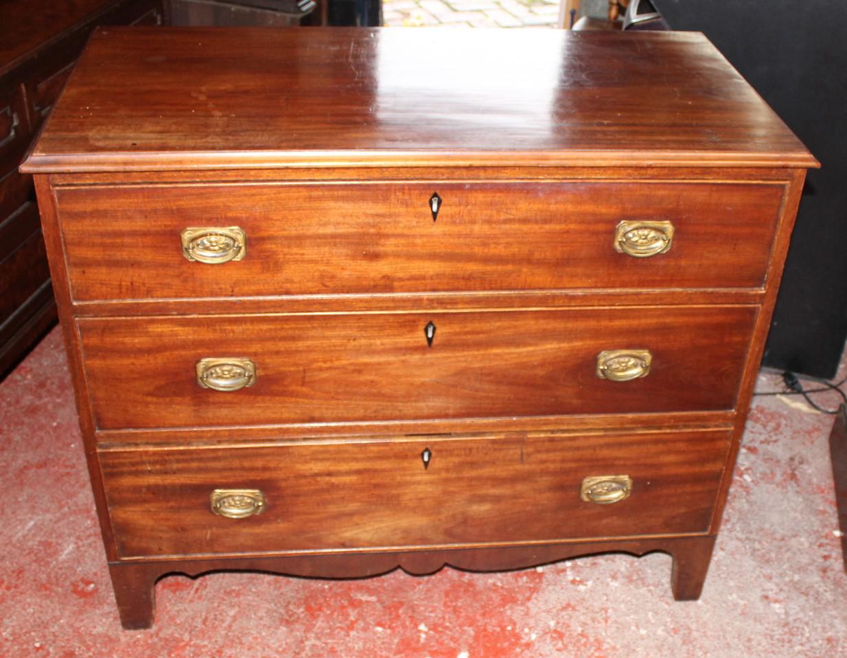 1900's Mahogany 3 Drawer Bow Chest on Splayed Feet