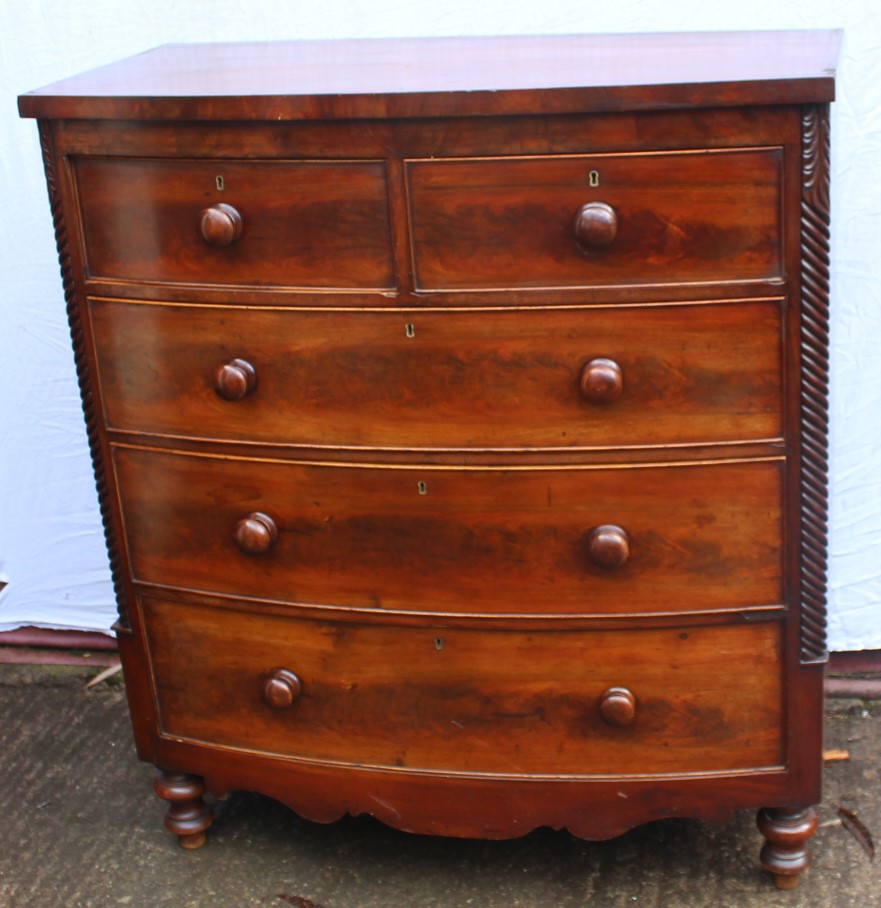 1900s Mahogany Bow Chest Drawers 2 Over 3 Drawers