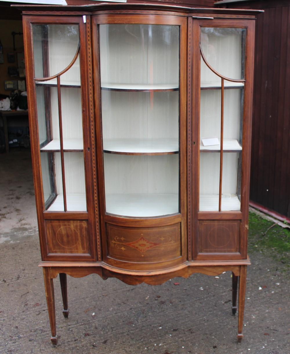 1900's Mahogany China Cabinet with Bow Glass and Inlay