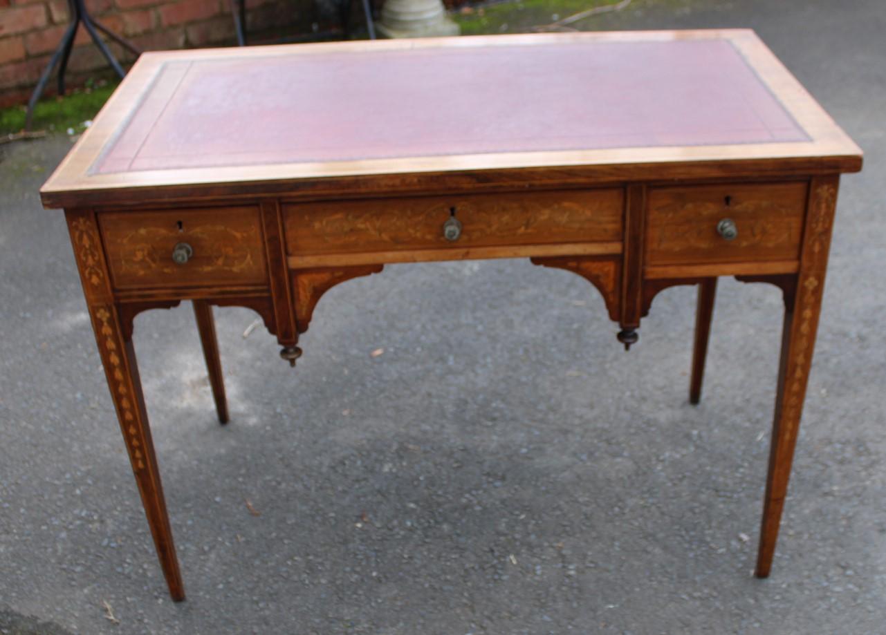 1900s Mahogany Desk with Inlay and Red Leather- One Piece