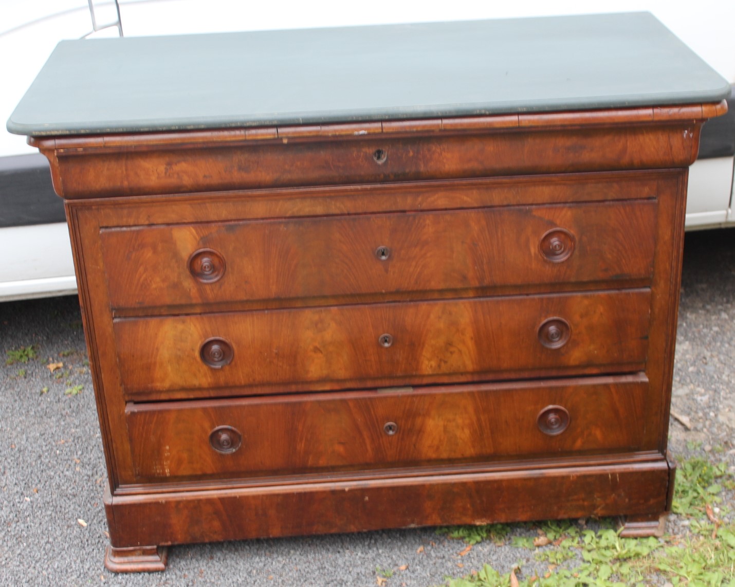 1900s Mahogany Empire French Style Chest Drawers. Painted Top
