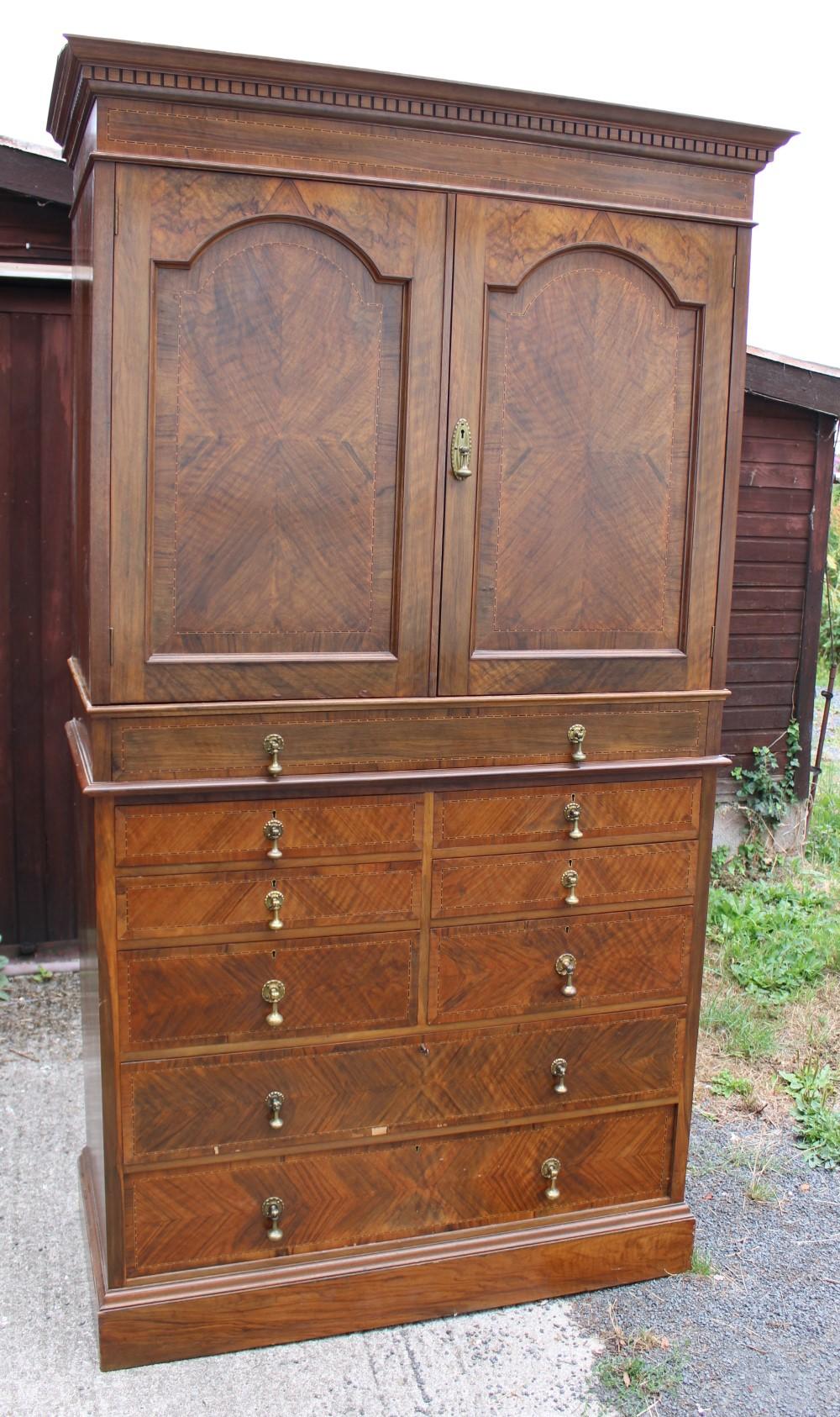 1900's Mahogany Linen Press with Inlay