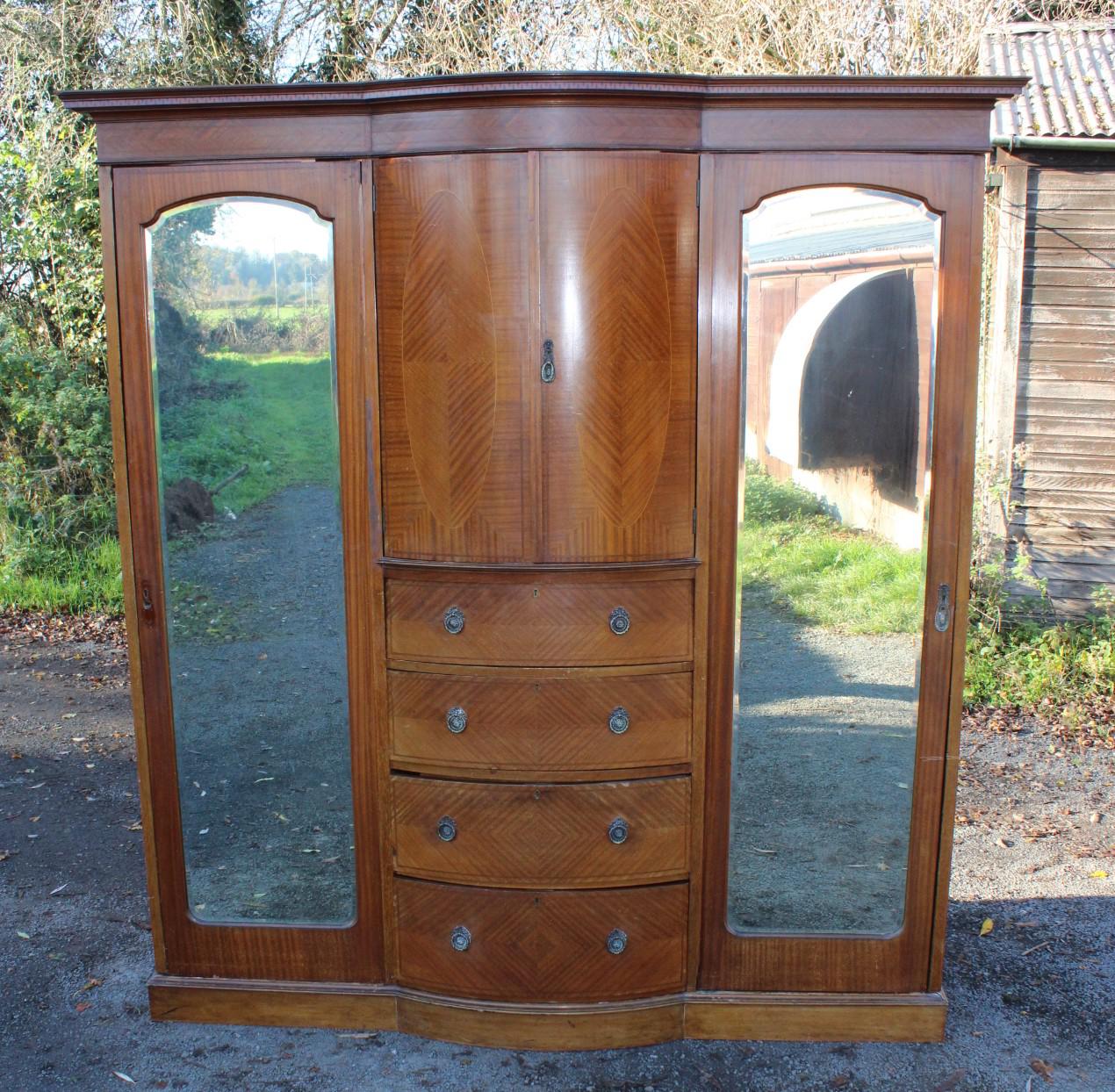 1900's Mahogany Mirrored Bow Front Compactum Wardrobe with Inlay