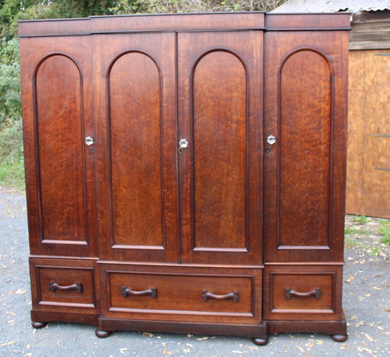 1900's Mahogany Plum Pudding 4 Door Wardrobe