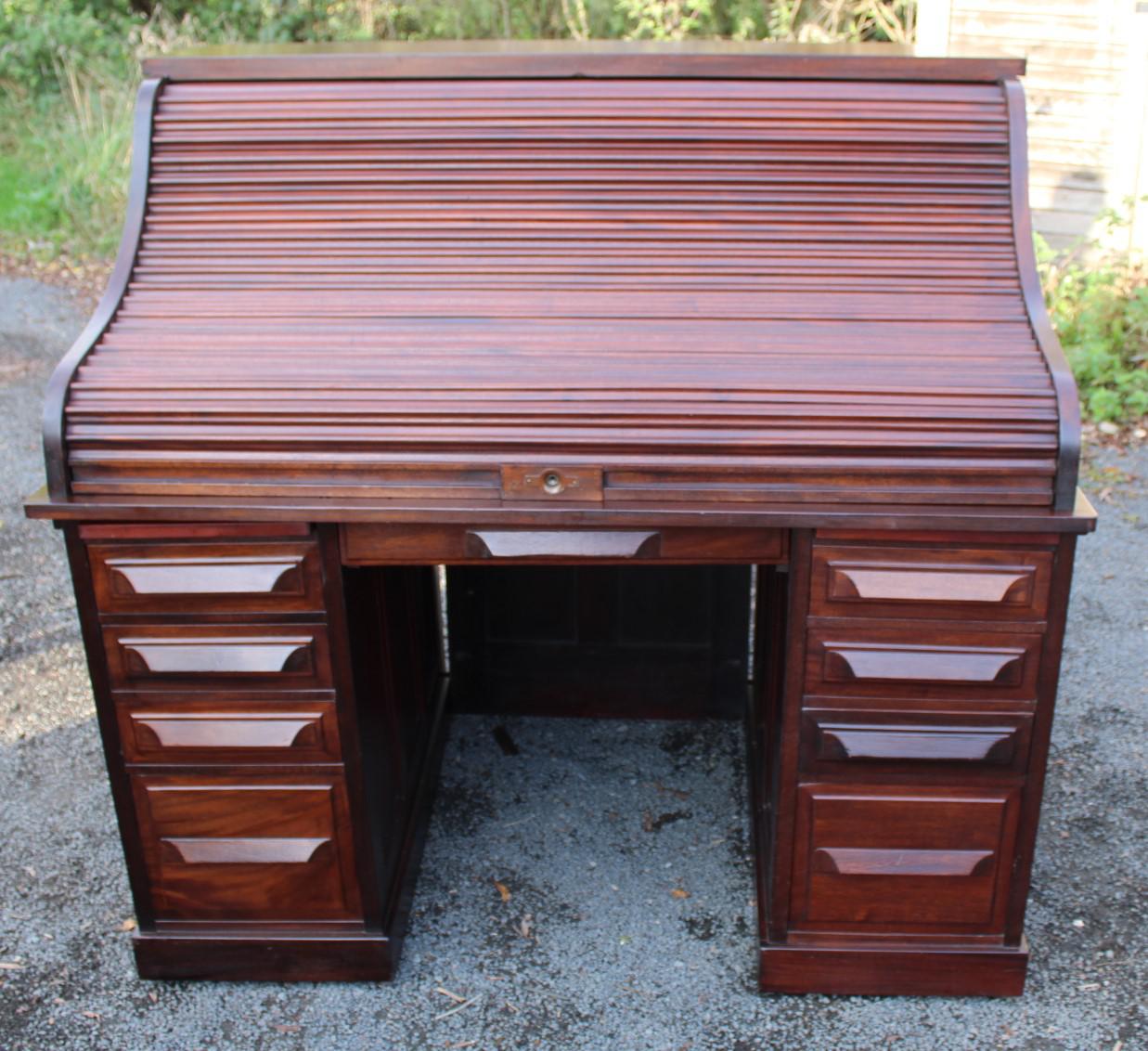 1900's Mahogany Roll Top Desk with Fielded Panels