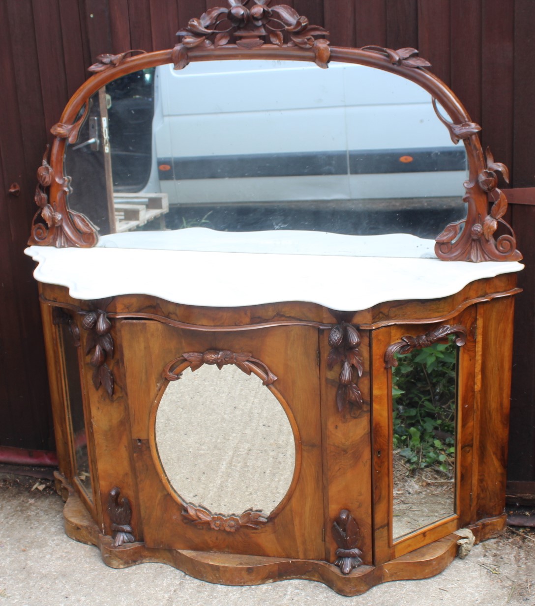 1900s Mahogany Serpentine Chiffonier Base with Marble Top and Mirror Back