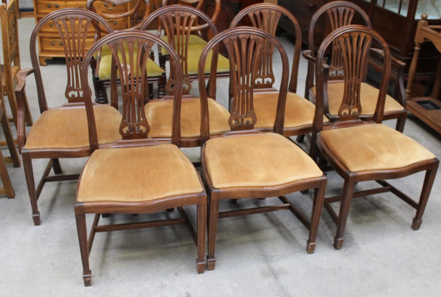 1900's Mahogany Set 8 Hoop Dining chairs with Pop out Seats in Gold